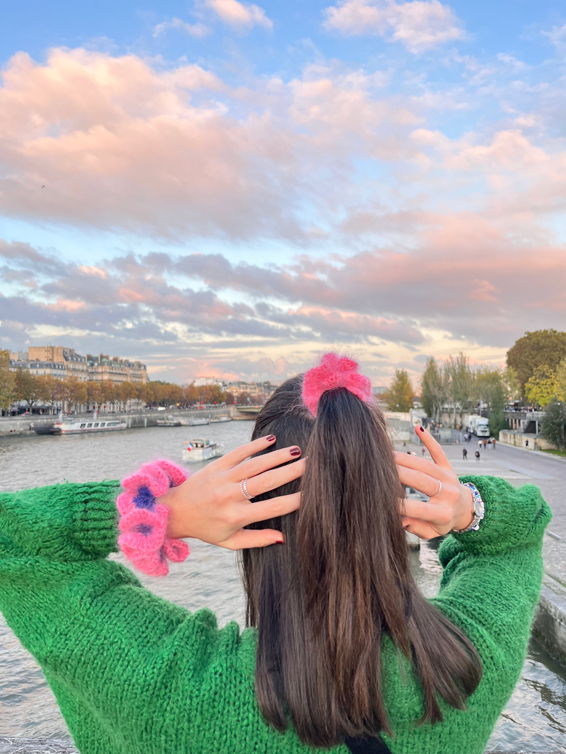 - Se porte sur la tête en chignon, tresse, queue de cheval, ou bien au poignet !