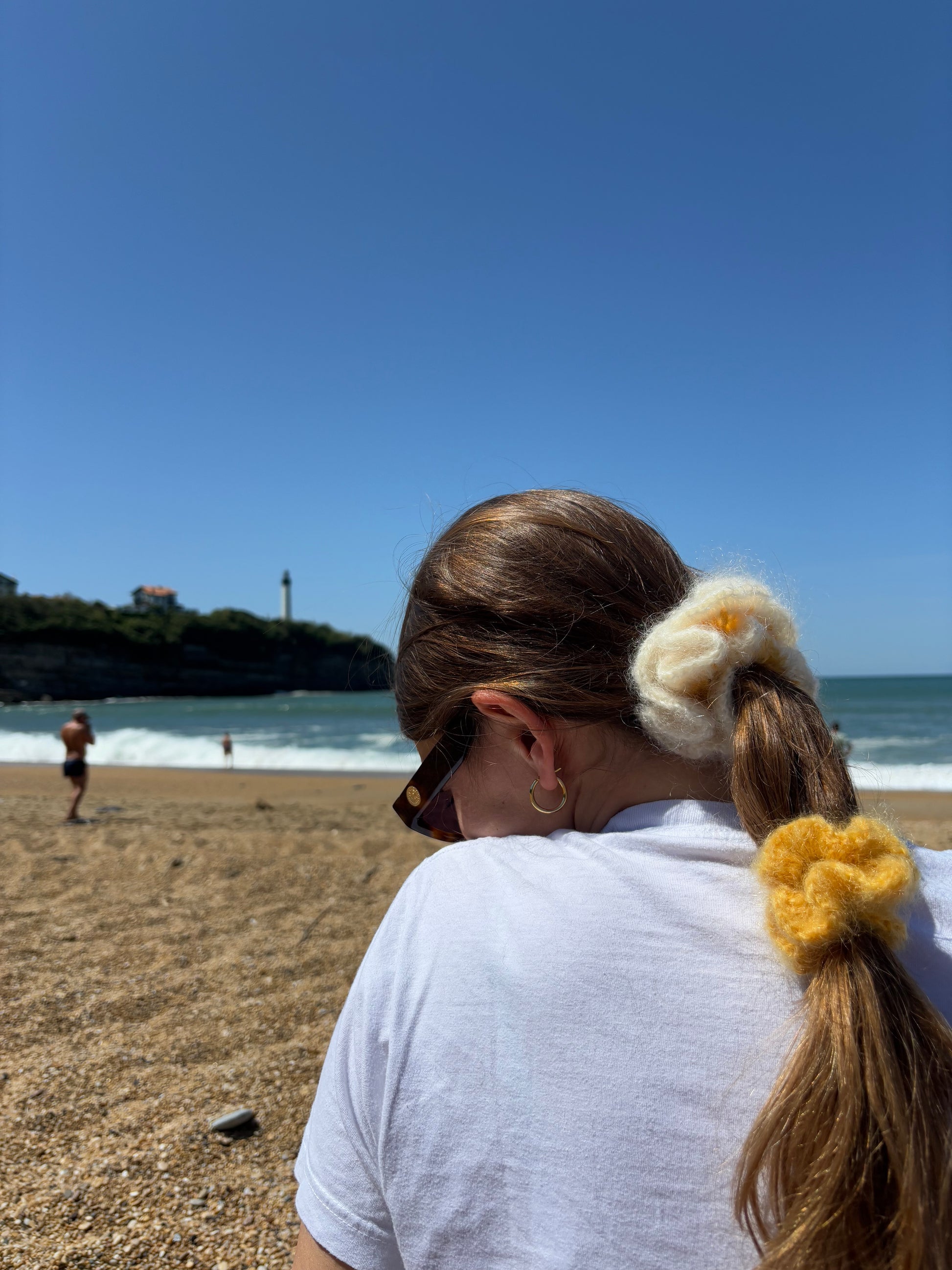 - Se porte sur la tête en chignon, tresse, queue de cheval, ou bien au poignet !