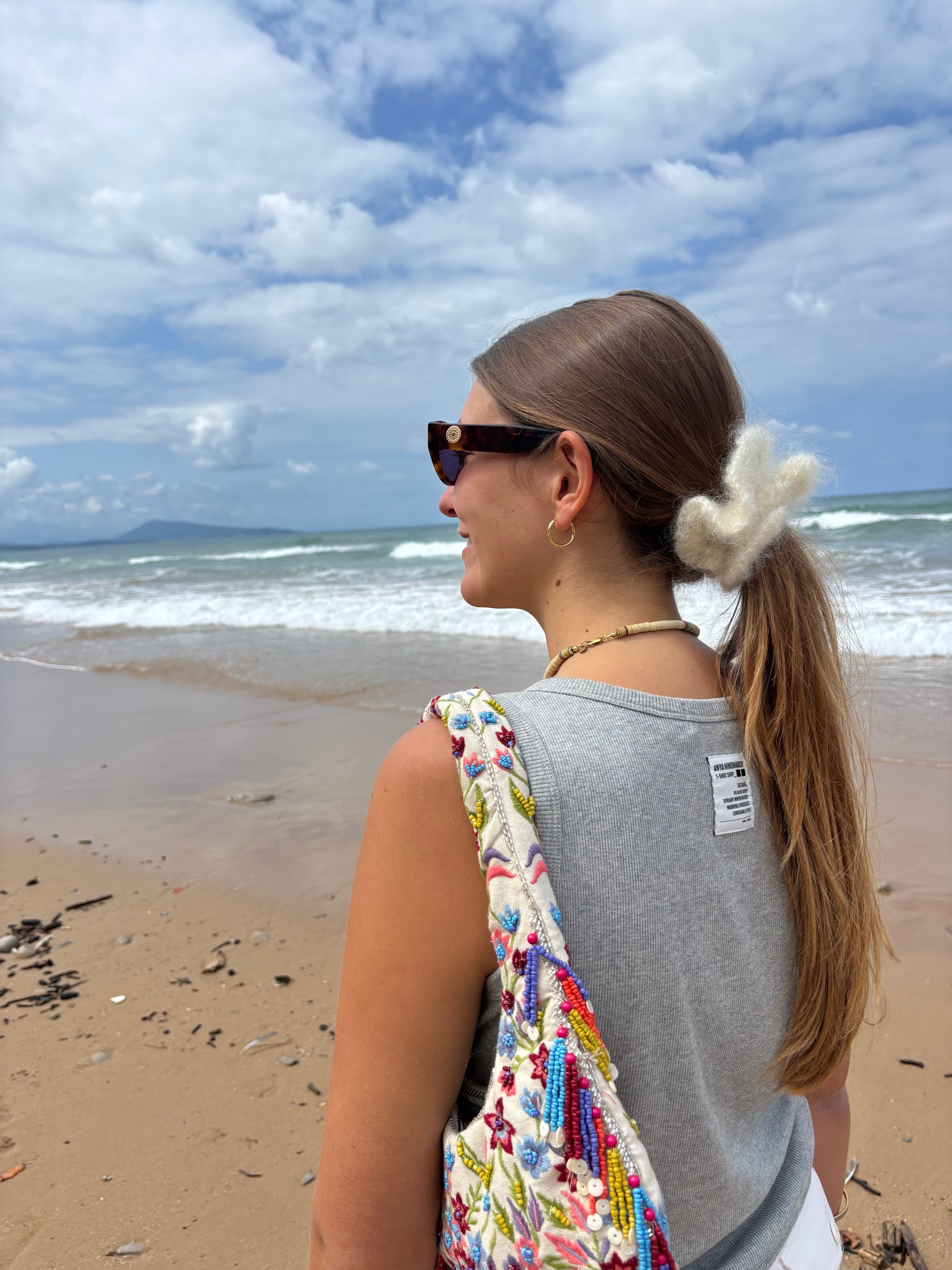 - Se porte sur la tête en chignon, tresse, queue de cheval, ou bien au poignet !
