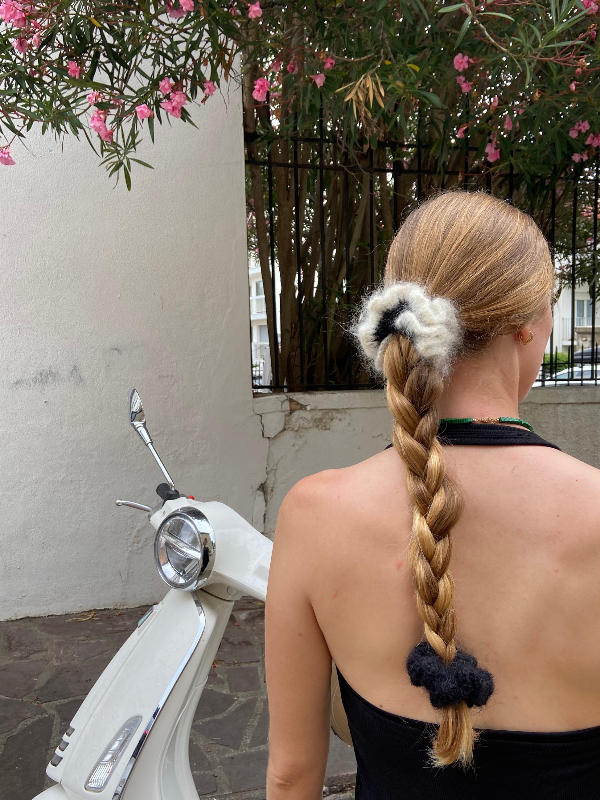 - Se porte sur la tête en chignon, tresse, queue de cheval, ou bien au poignet !
